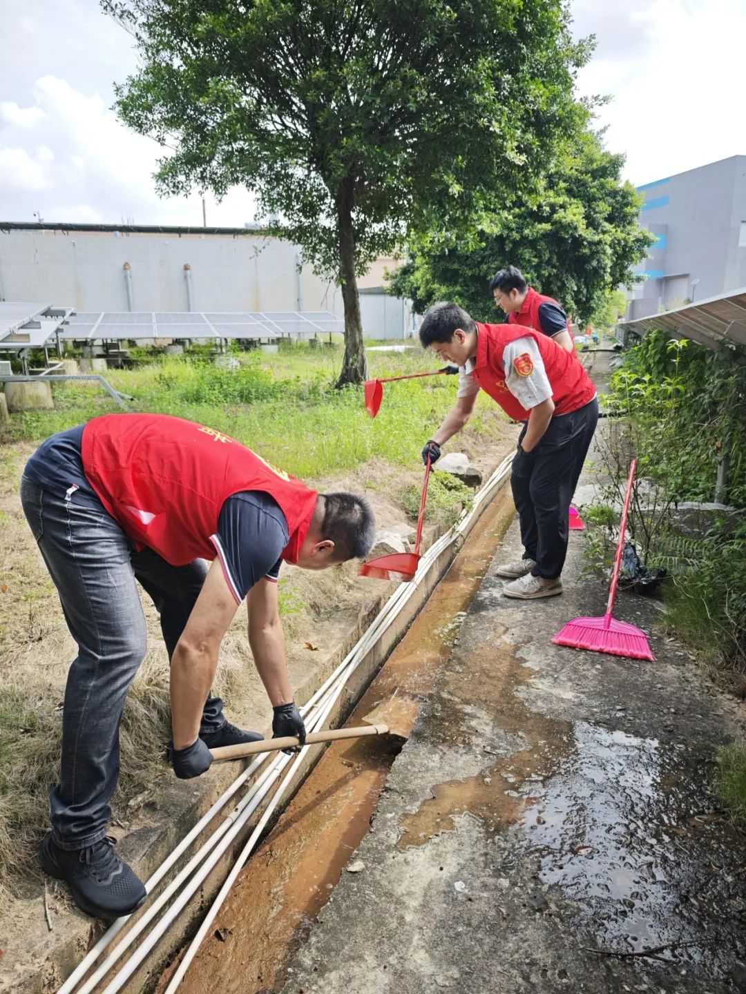 志愿者們挽起衣袖,細(xì)致清理草坪上的各類(lèi)滯留垃圾,徹底清空閑置容器中的積水;揮汗疏通邊坡水渠,認(rèn)真清掃周邊散落雜物,確保所有廢棄物及時(shí)清運(yùn)、不留死角。短短數(shù)小時(shí)內(nèi),10余處衛(wèi)生隱患點(diǎn)被成功“攻克”。曾經(jīng)為蚊蟲(chóng)提供滋生溫床的角落和容器得到全面清理,不僅讓公司環(huán)境煥然一新、整潔明亮,更從源頭上鏟除了蚊蟲(chóng)滋生土壤,有效筑起防范蚊媒傳播的健康防線(xiàn)。
